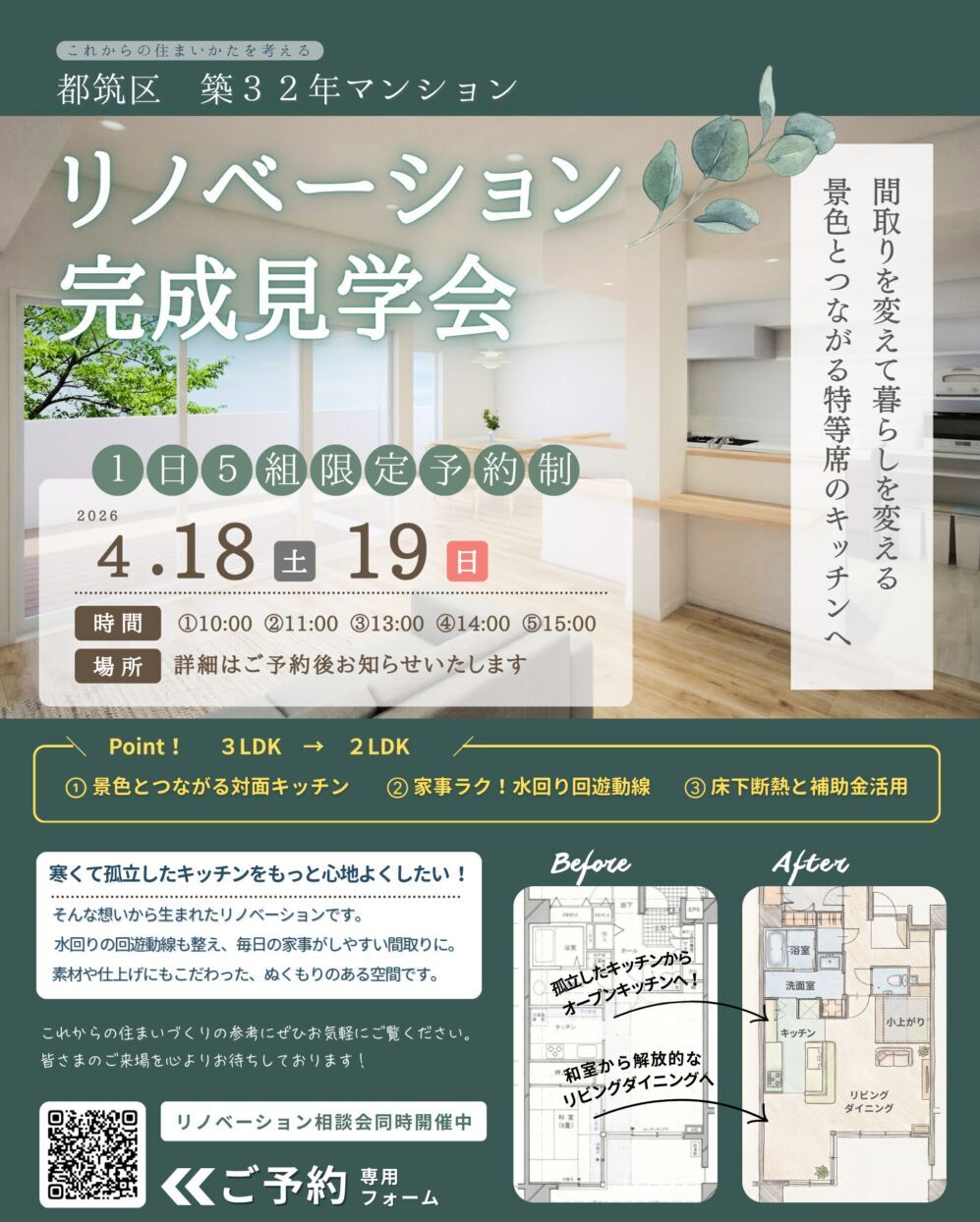【4/18(土)・19(日)開催】マンションリノベーション完成見学会のお知らせ
