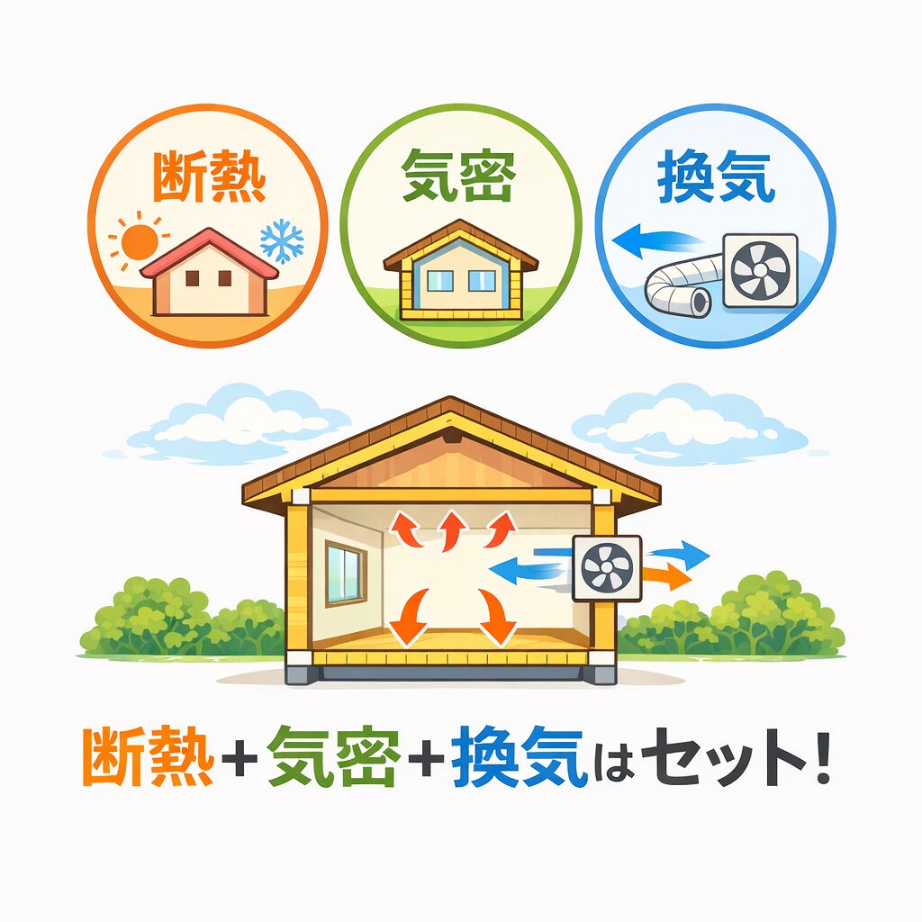 ただし、実際に体感が大きく変わるかどうかは、断熱・気密・換気の3つがセットで整うかで決まります。
